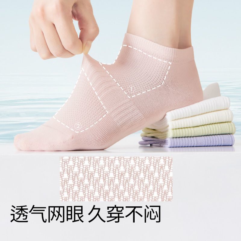 袜子女夏季薄款短袜抗菌吸汗亲肤网眼透气防滑不掉跟无骨女士短袜