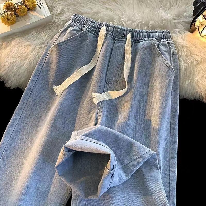港风新款牛仔裤夏季男女直简显瘦百搭新款宽松休闲长裤子