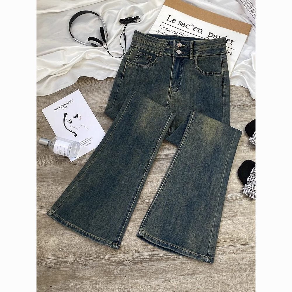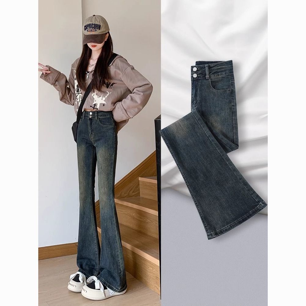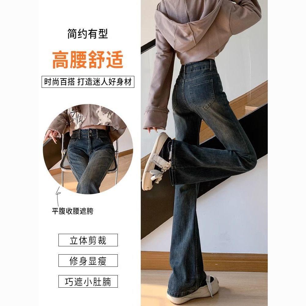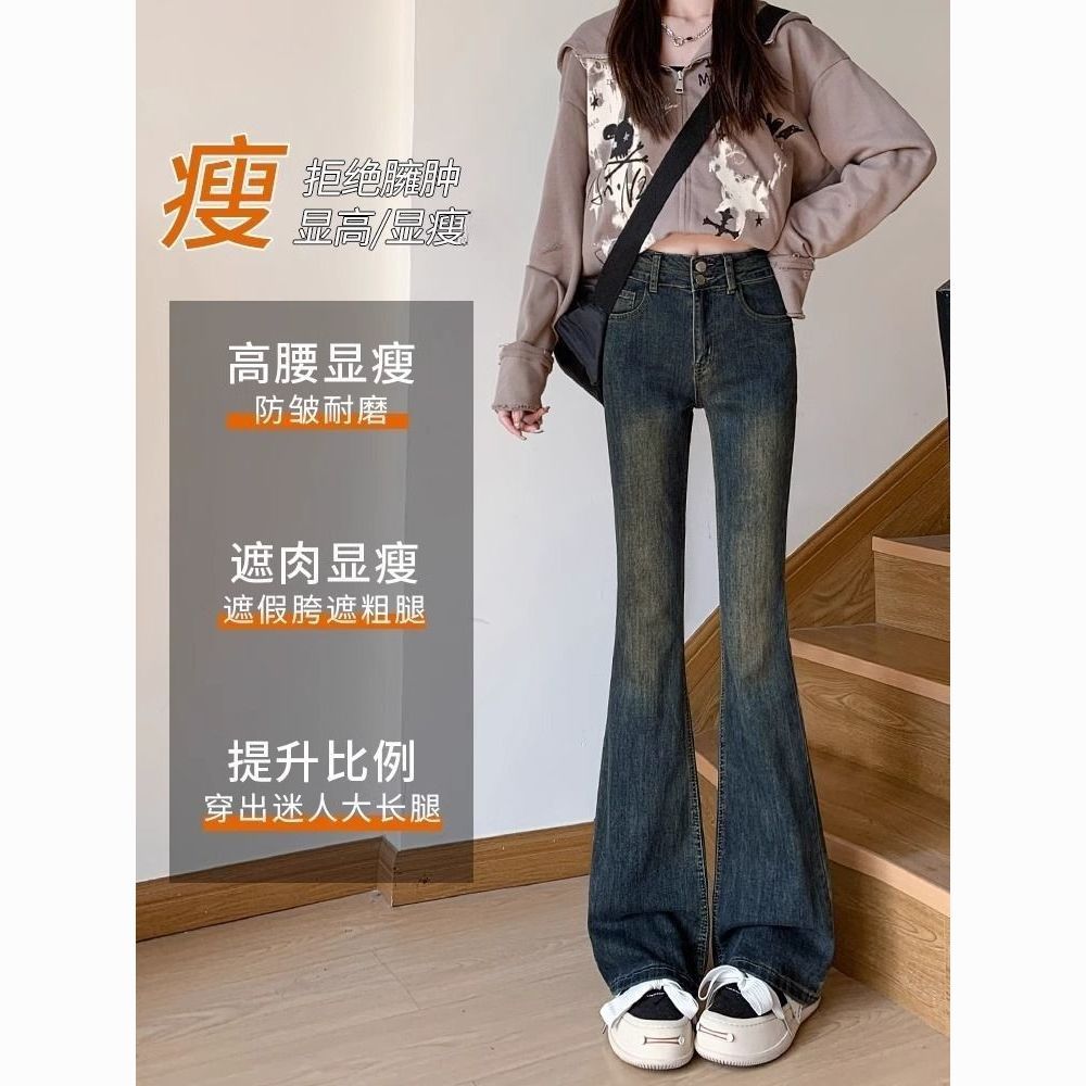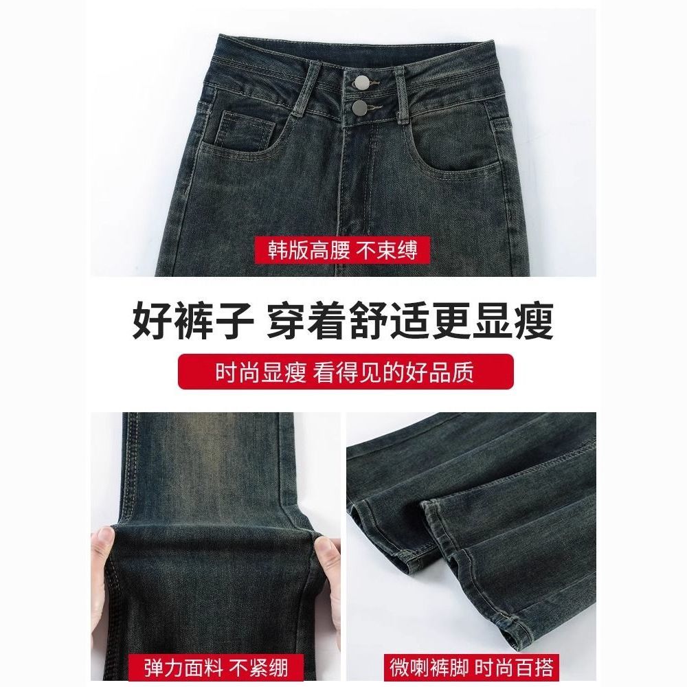 AMYOVE加绒高腰微喇牛仔裤女喇叭裤女百搭显瘦显高2025秋冬新款