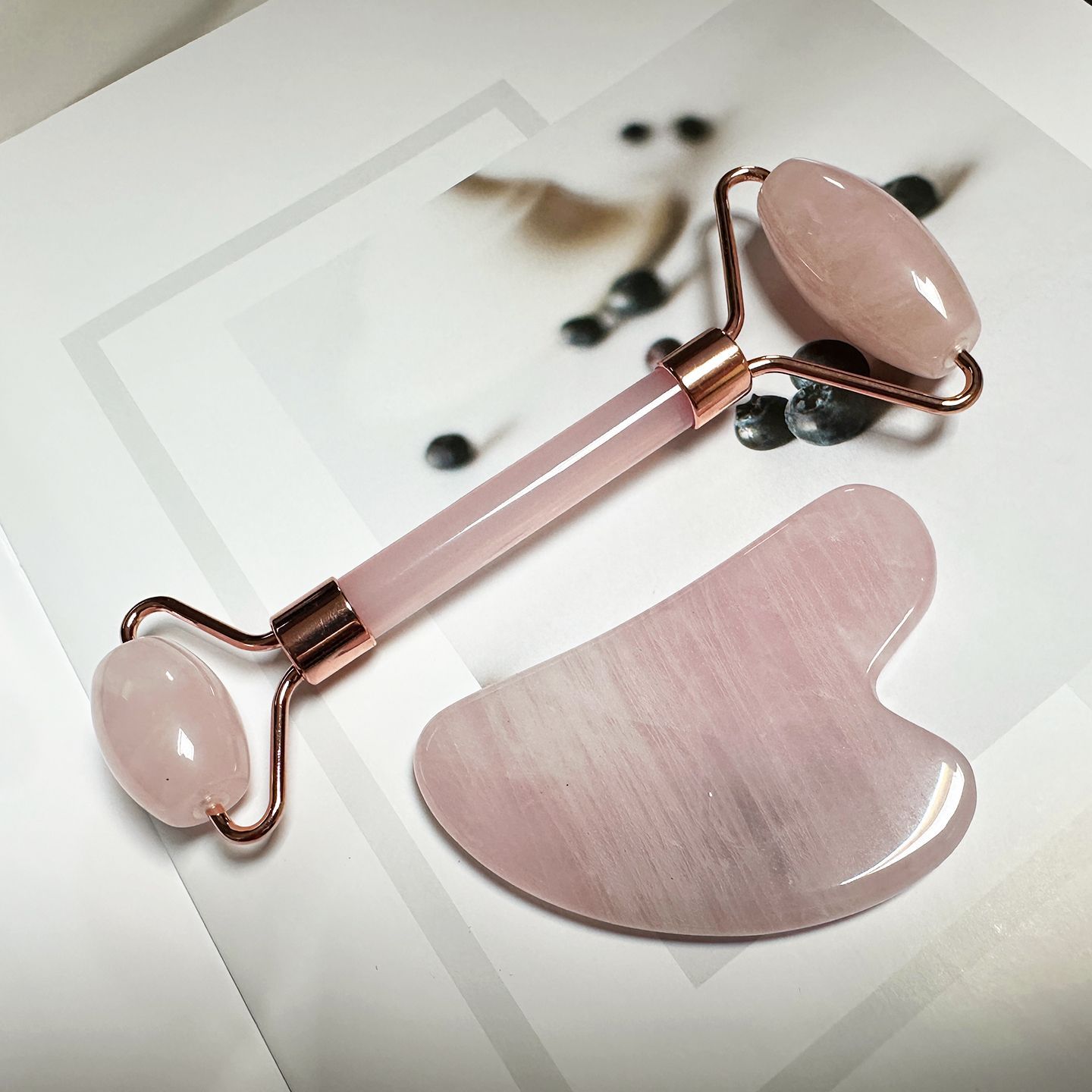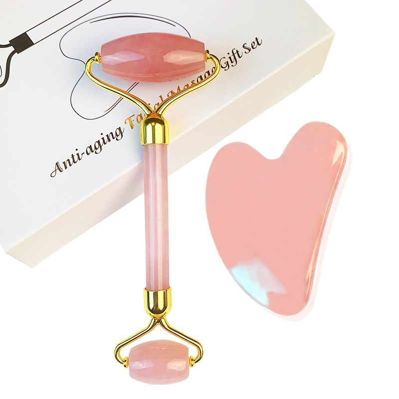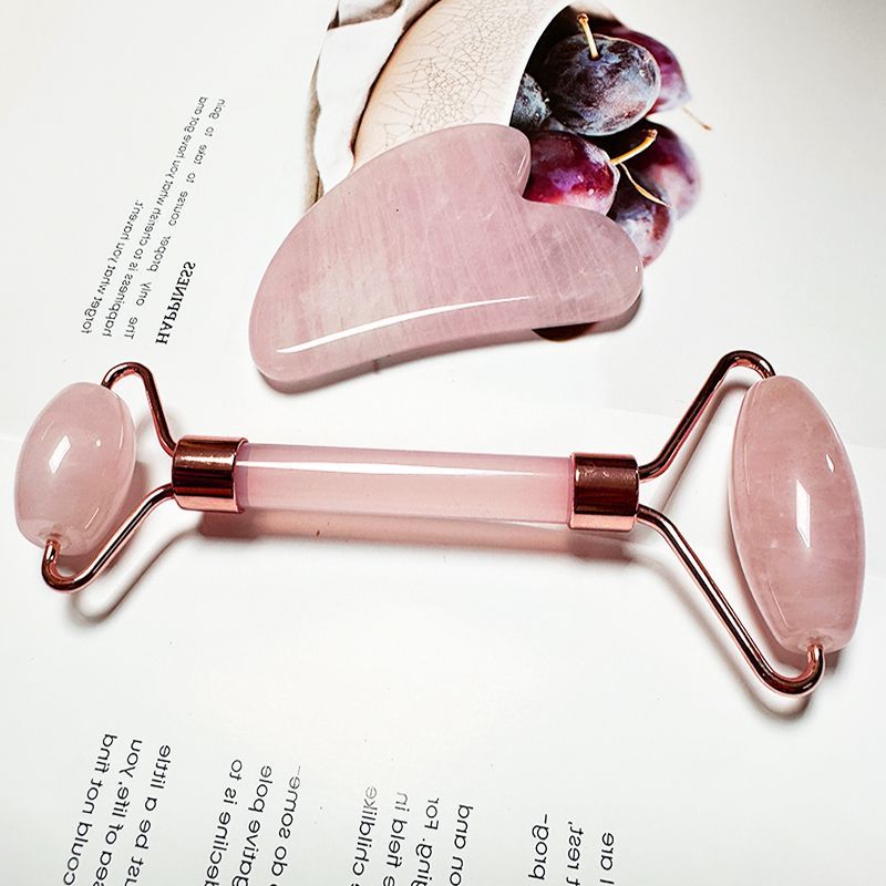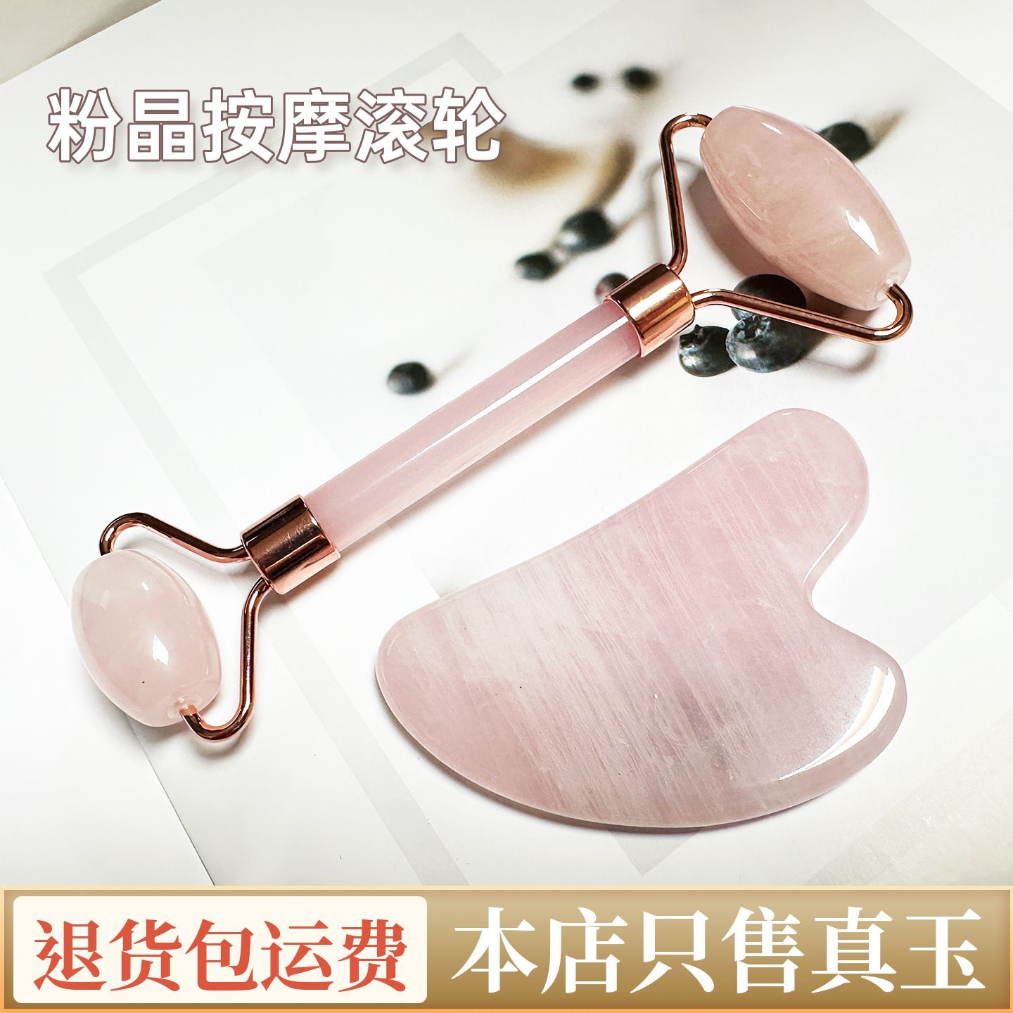 粉水晶刮痧板面部玉轮滚脸全身通用玉石刮脸板神器专用