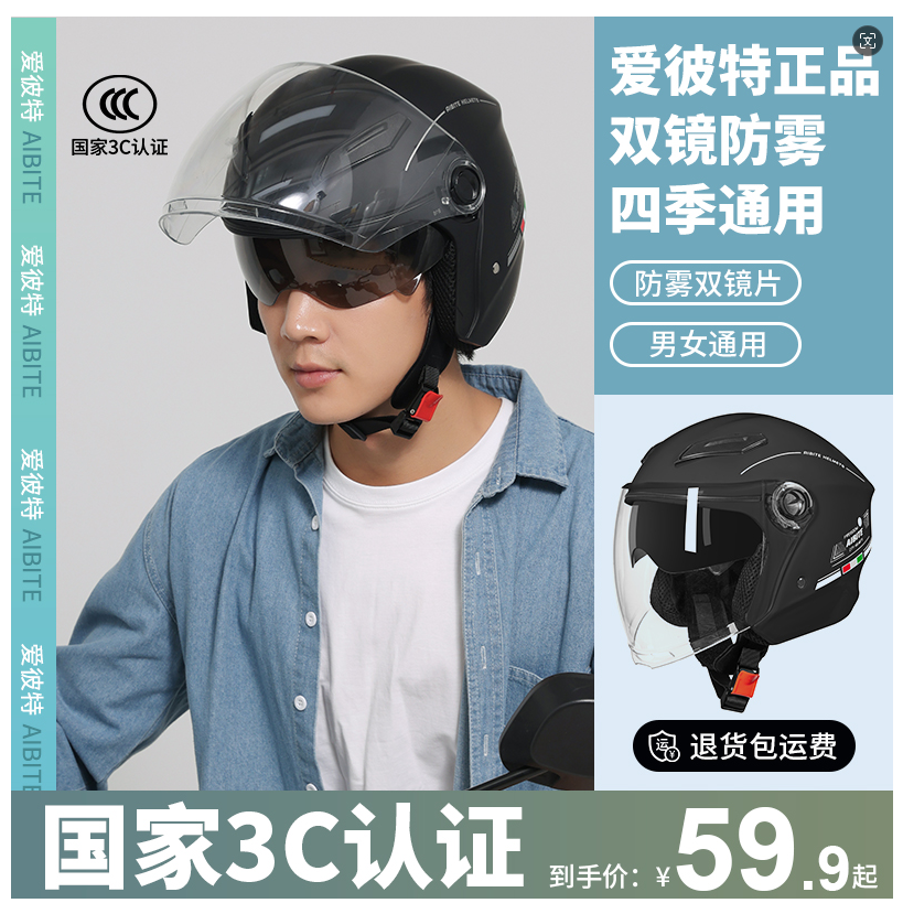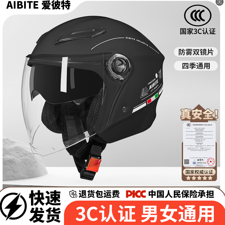 爱彼特3C新国标认冬季保暖电动车头盔电瓶男女车四季通用半盔