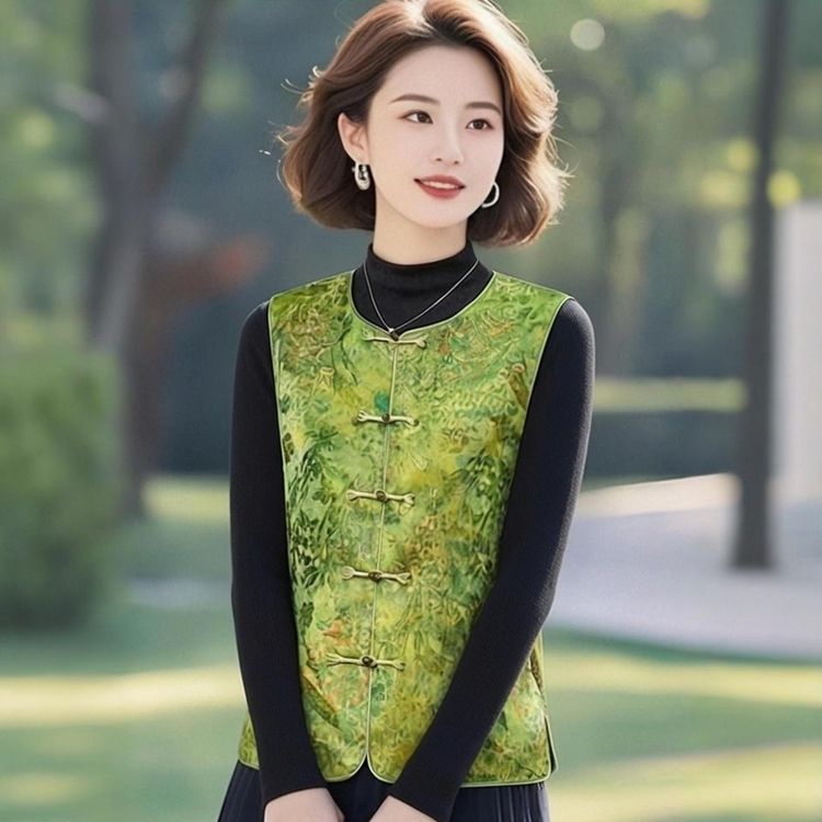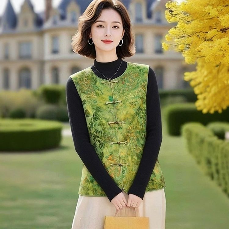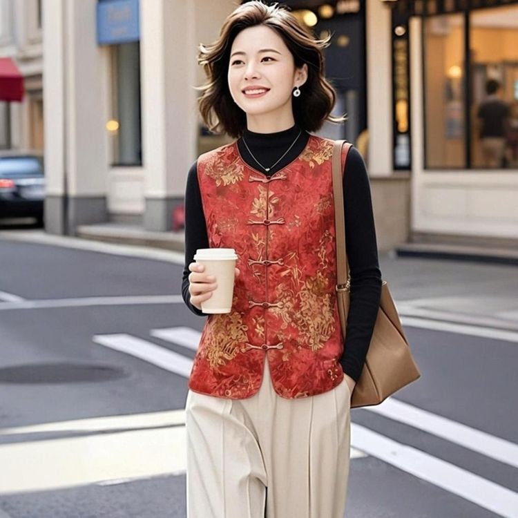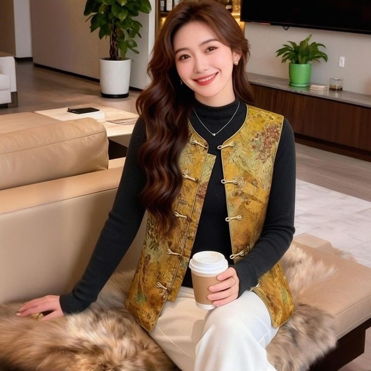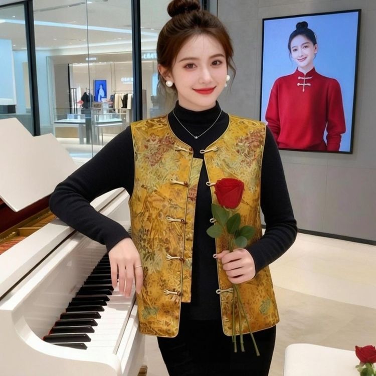 女士国风春秋中式2026新款马甲提花复古盘扣坎肩立领无袖上衣