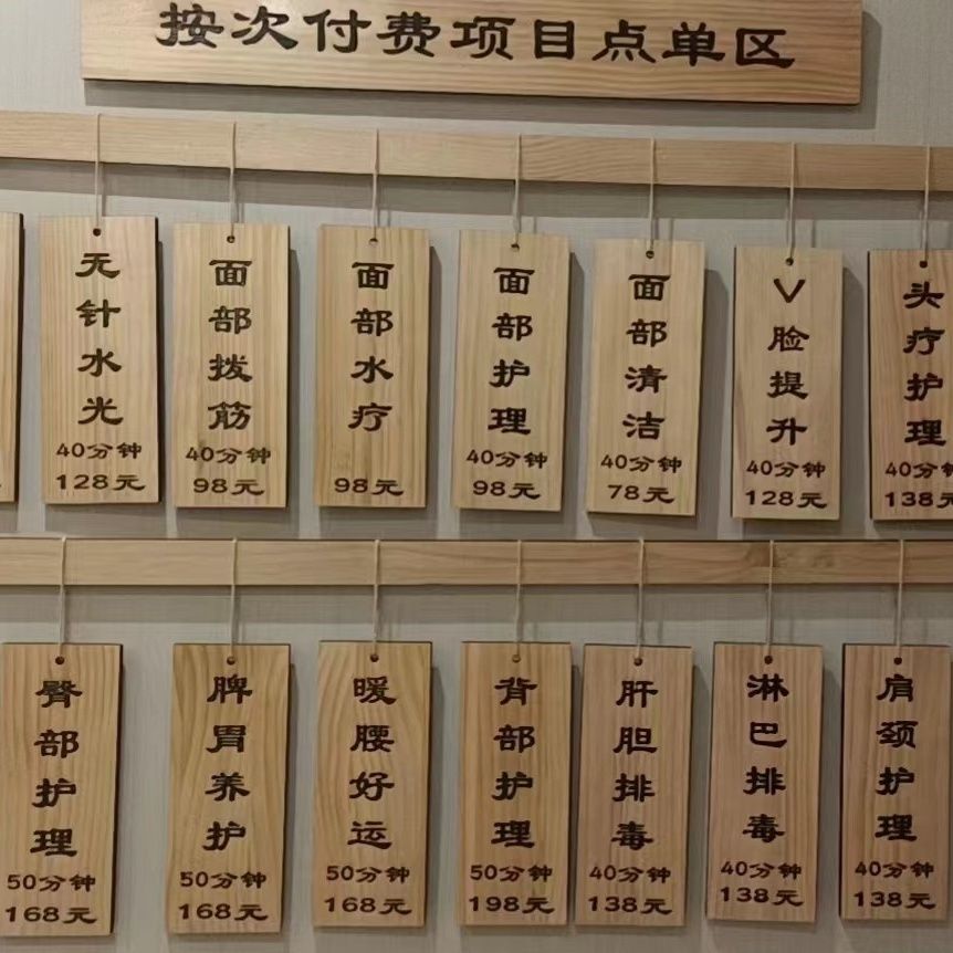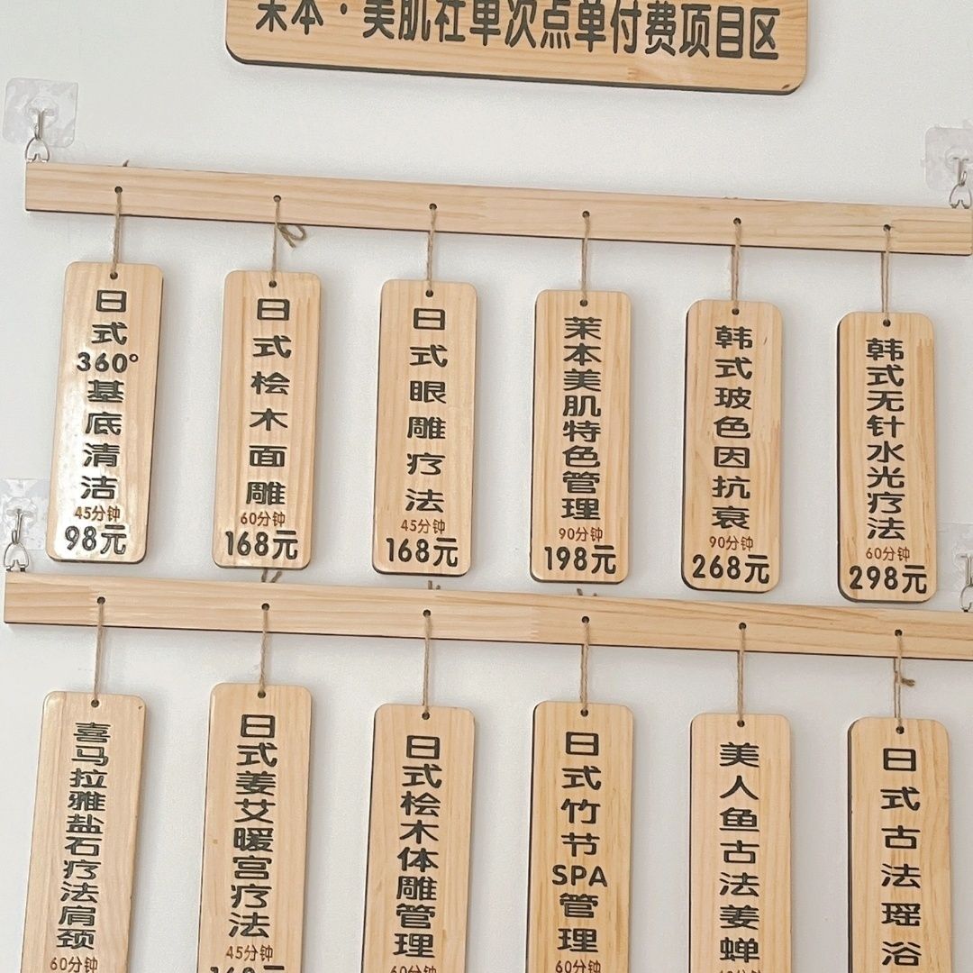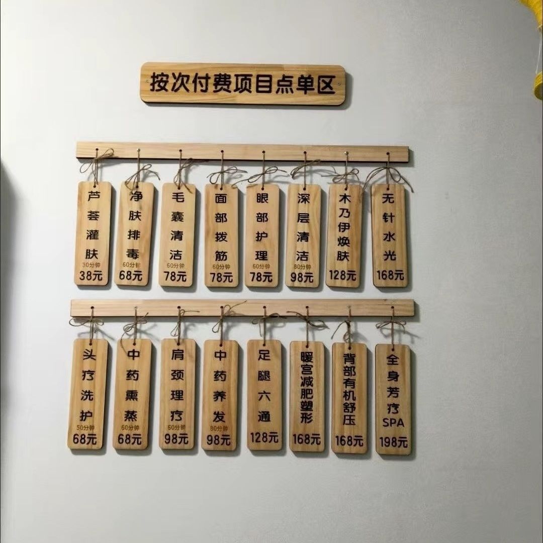 刻字美容院店价目表价格牌挂式挂墙理发店价目表挂墙菜牌定制木质