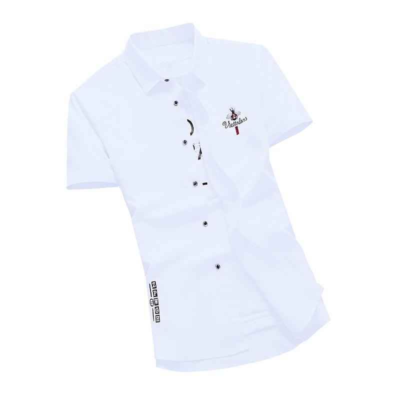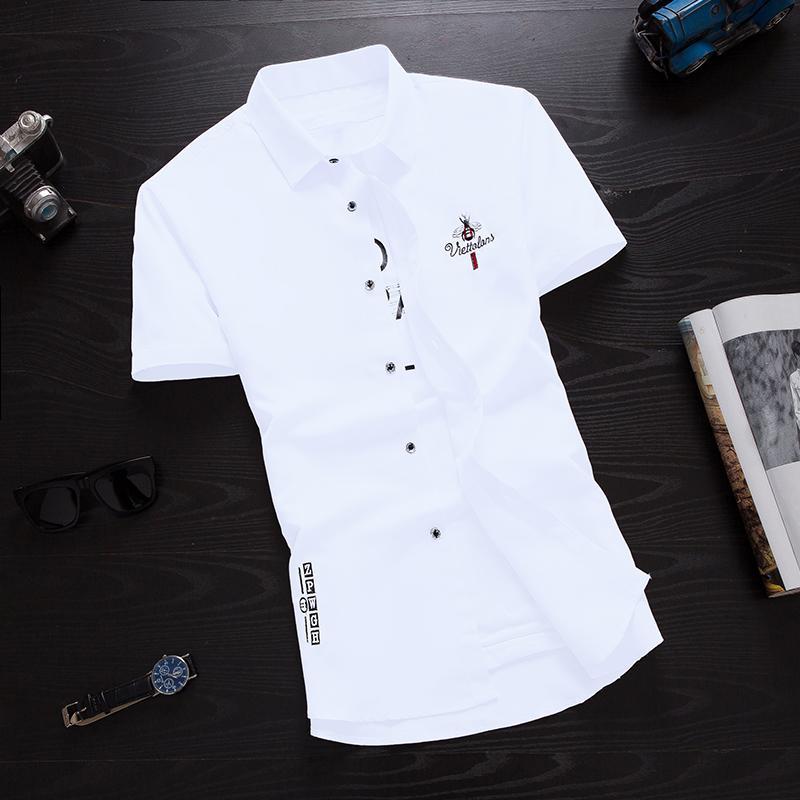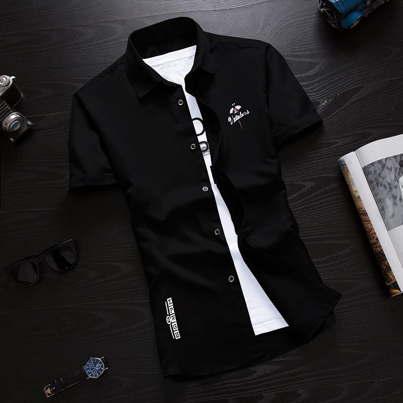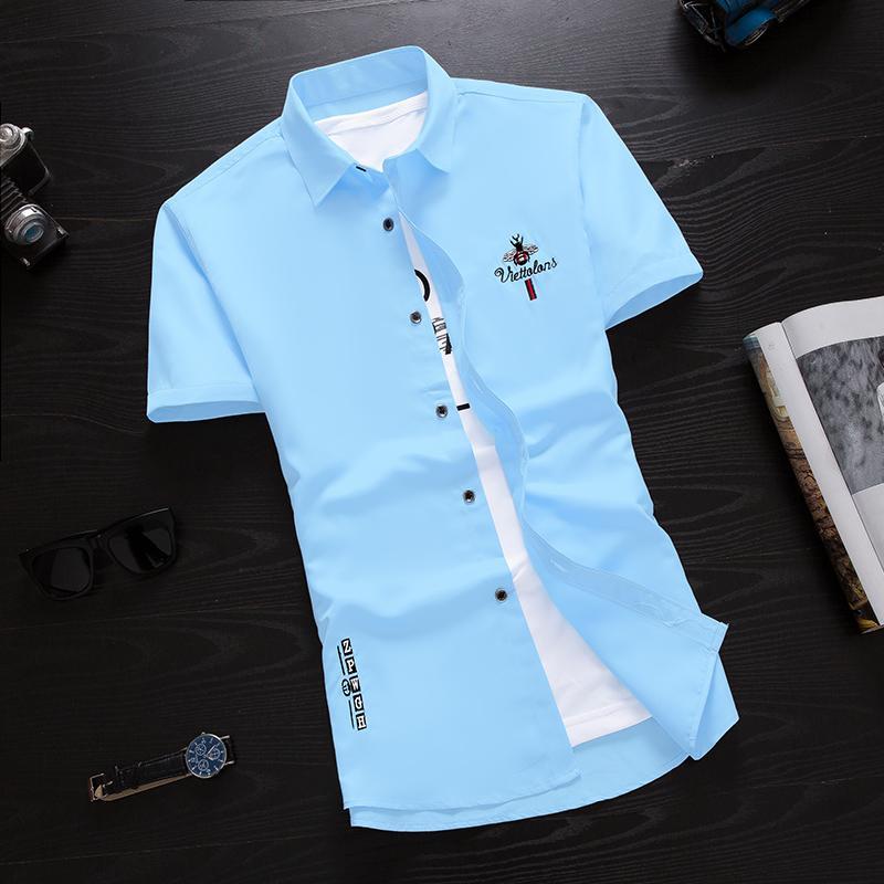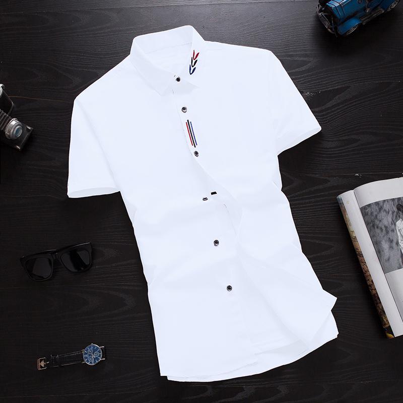 夏季短袖衬衫男士韩版修身青少年半袖衬衣潮男装休闲白色寸衫衣服
