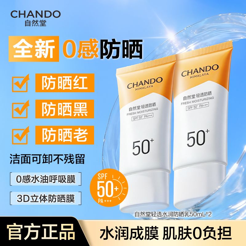 自然堂轻透水润防晒抗光老养肤防晒清爽不油腻不搓泥高倍防晒霜