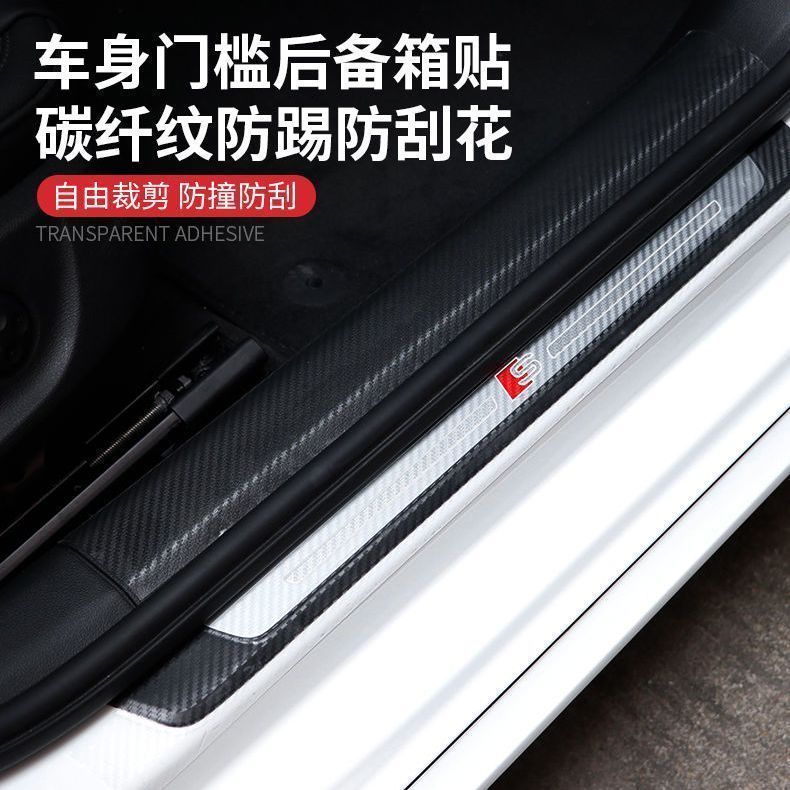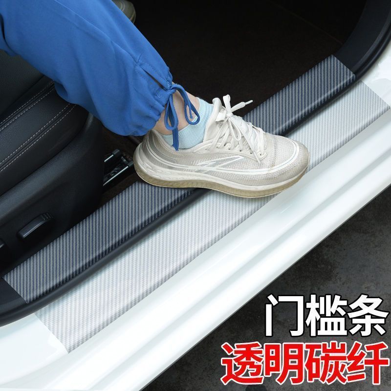 3D透明碳纤纹汽车门槛条保险杠防撞条防踩贴通用车身膜贴装饰条