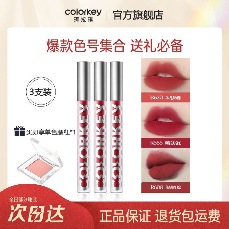 热卖组合3支】Colorkey珂拉琪怦然心动空气唇釉3支装镜面丝绒显白