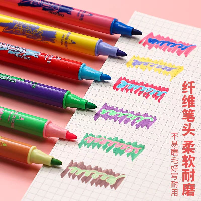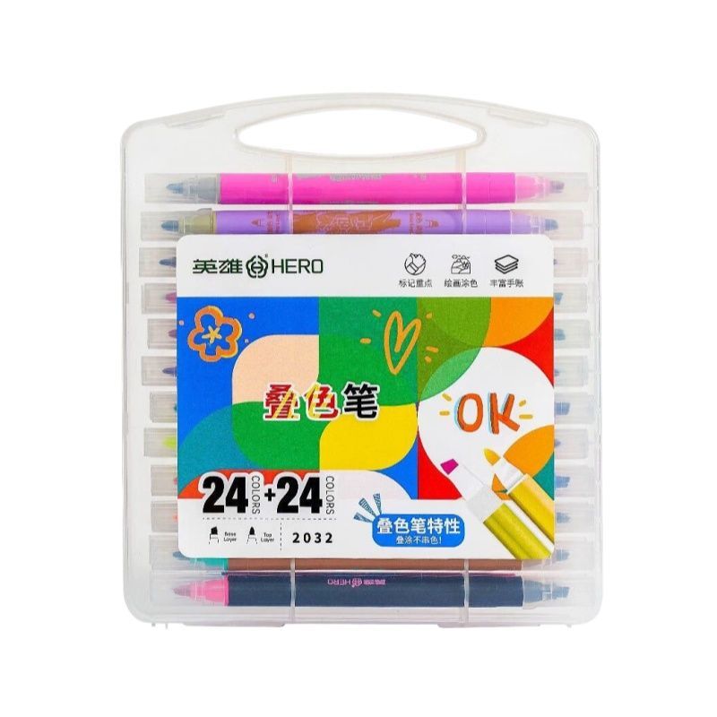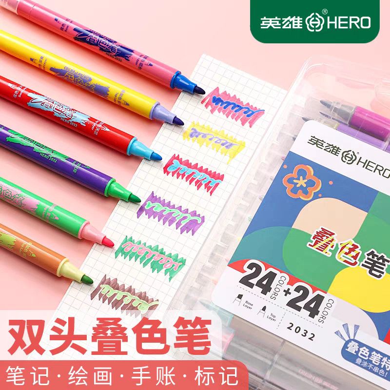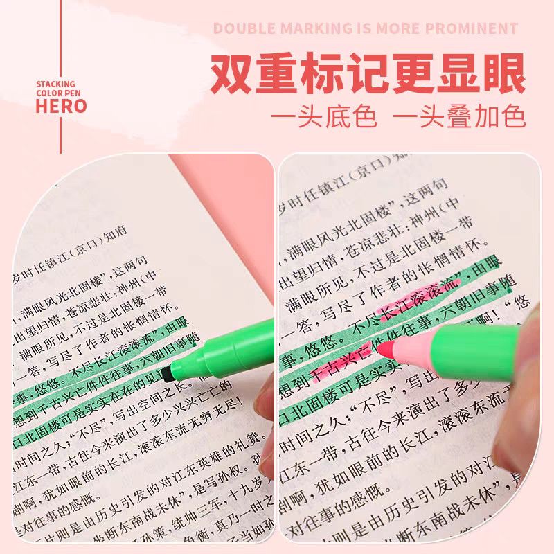 英雄软头笔叠色笔双头荧光笔高颜值学生大容量重点标记防晕染软头