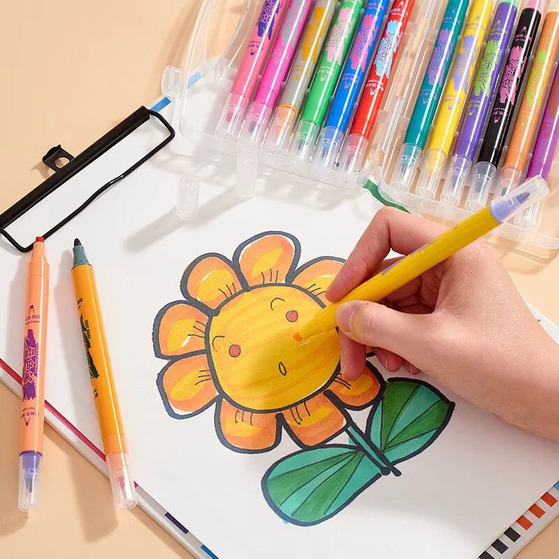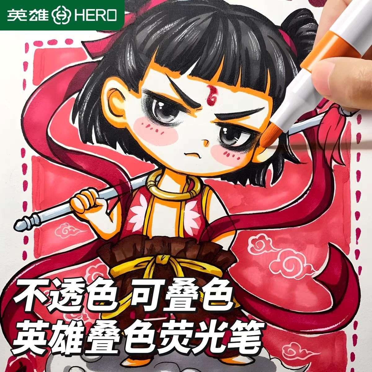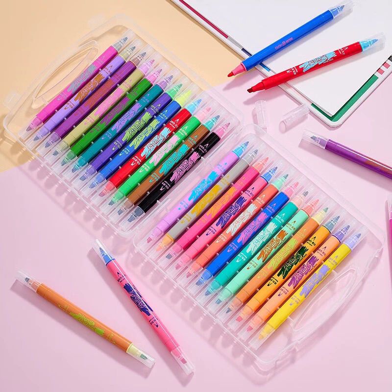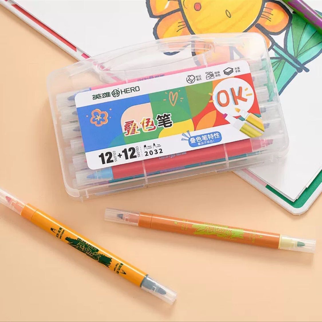 英雄软头笔叠色笔双头荧光笔高颜值学生大容量重点标记防晕染软头