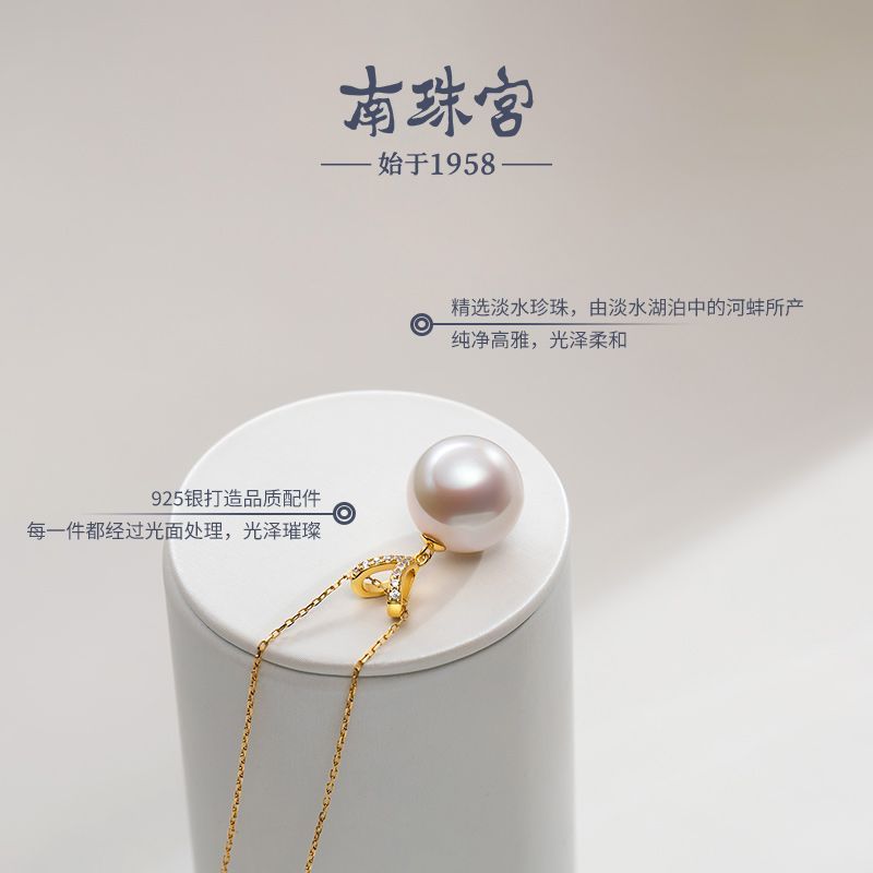 南珠宫淡水珍珠吊坠S925银璀璨锆石点缀优雅气质母亲节礼物