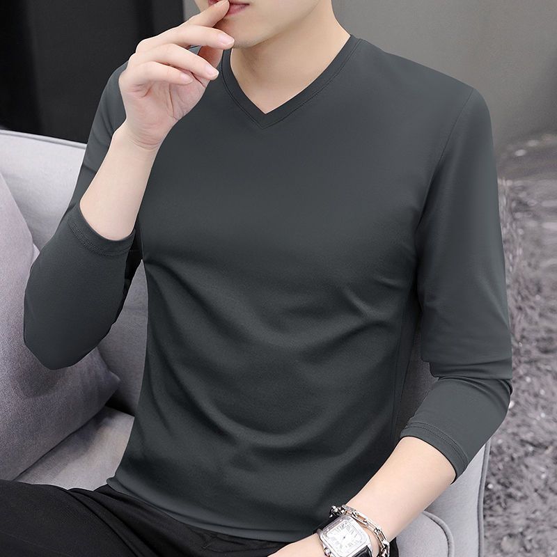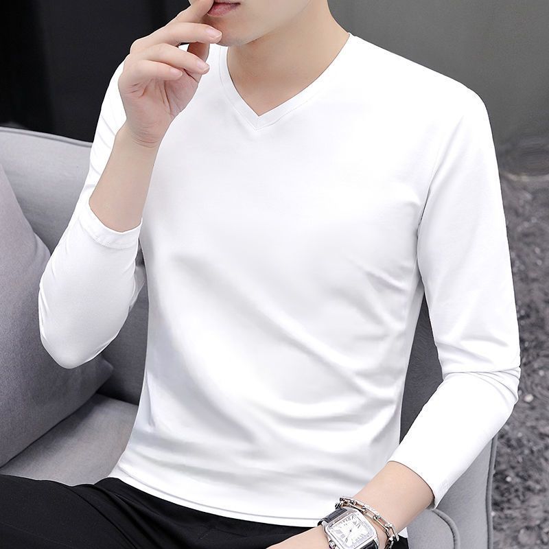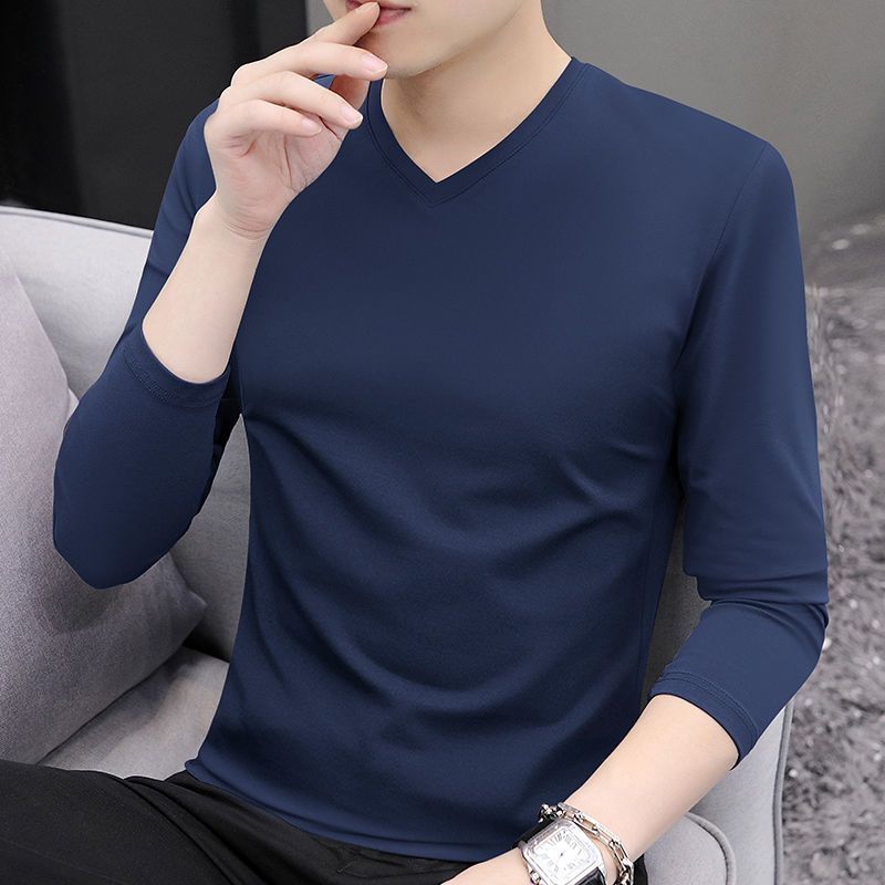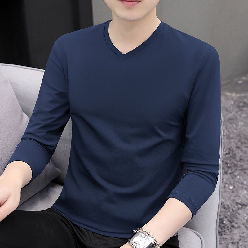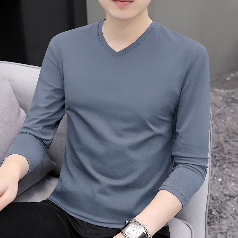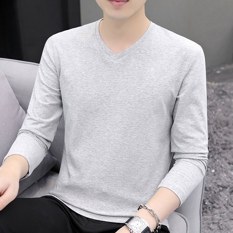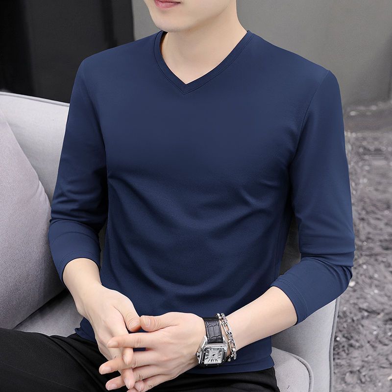 2024早秋新款男士纯棉打底衫上衣体恤休闲简约纯色套头长袖T恤男