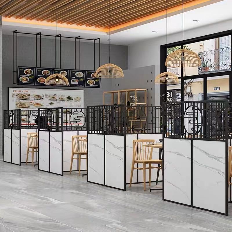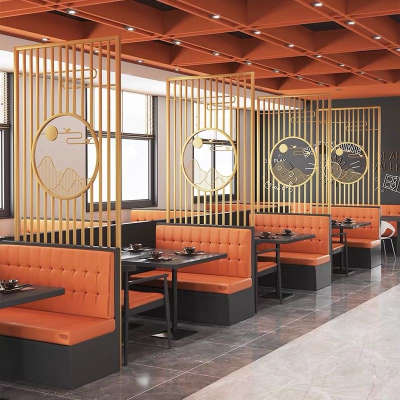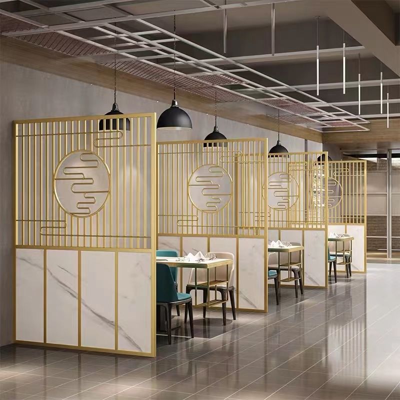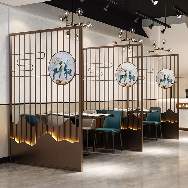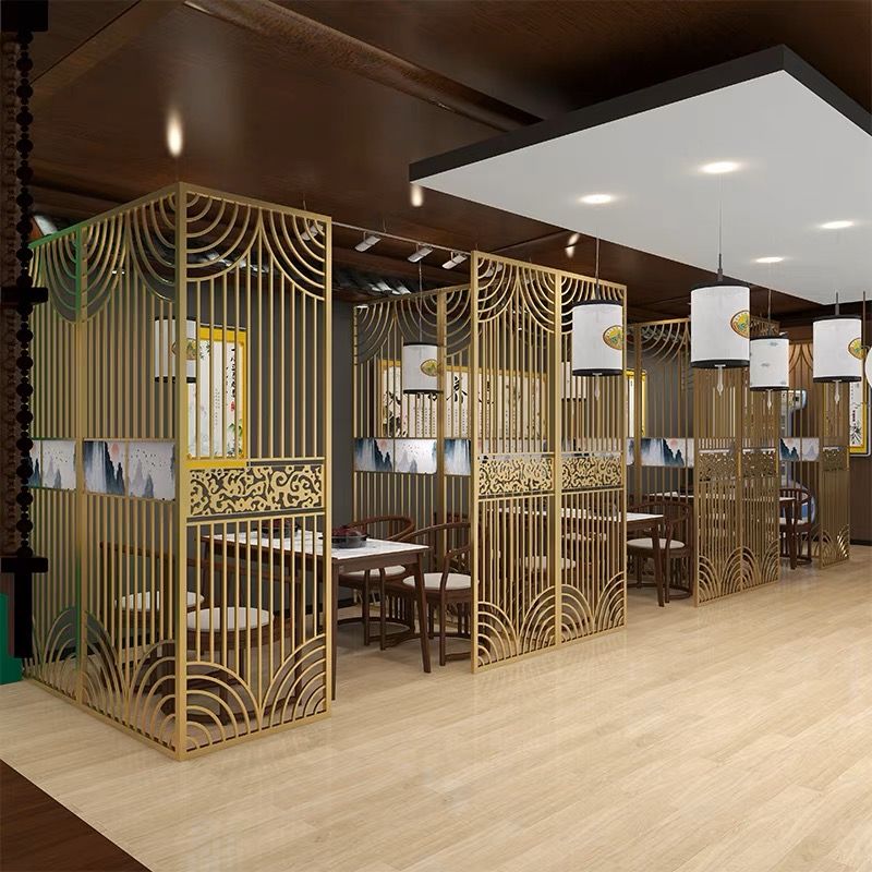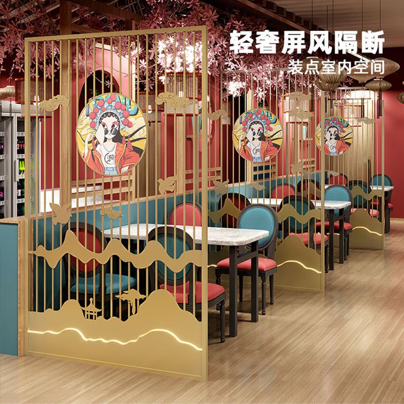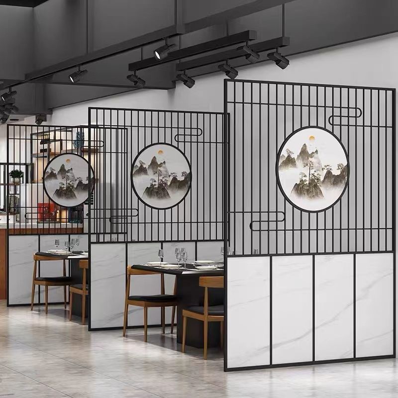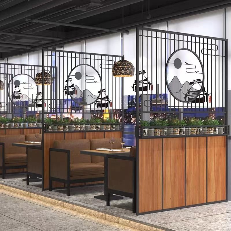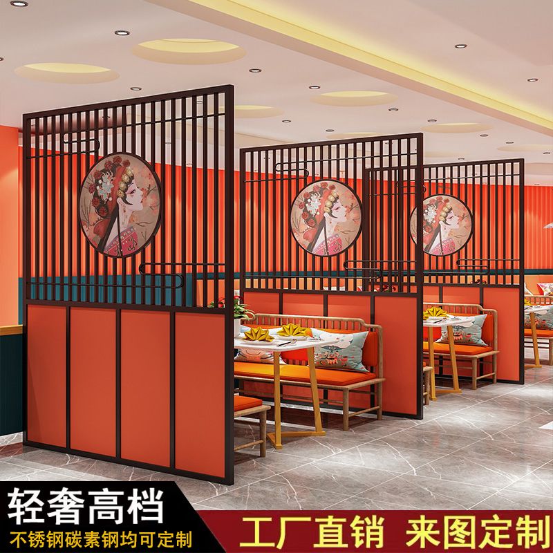 中式网红餐厅卡座围栏隔断墙隔断屏风商用餐饮店镂空铁艺屏风定制