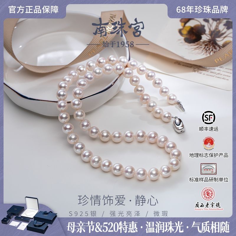 南珠宫[静心]淡水珍珠项链S925银近圆强光气质优雅母亲节礼物