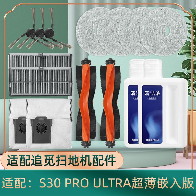 适配追觅S30 PU超薄版耗材扫地机器人配件拖布清洁液滚刷滤网尘袋