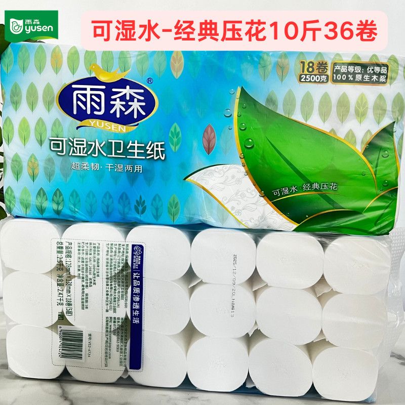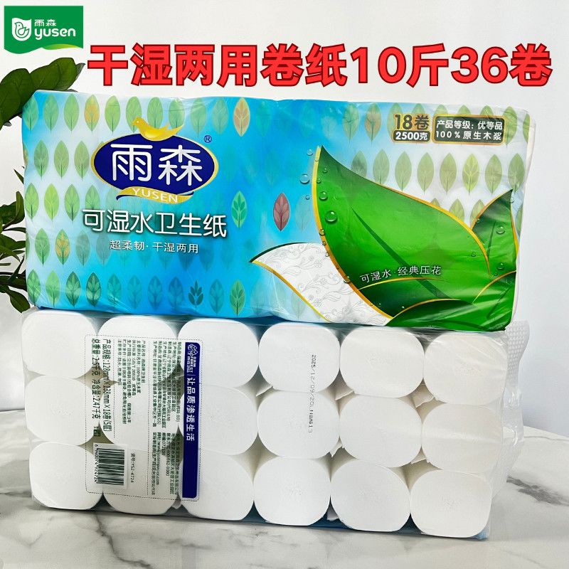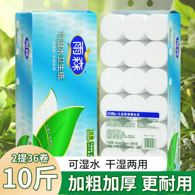 【10斤36卷】雨森卷纸可湿水卫生纸手纸厕纸家用学生宿舍无芯卷纸
