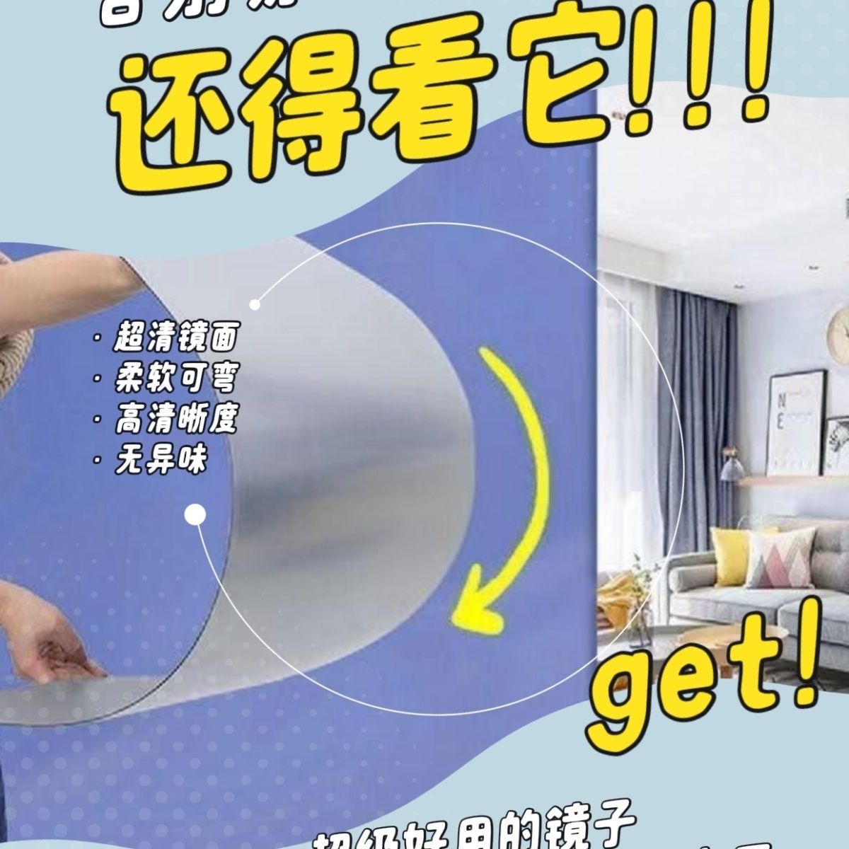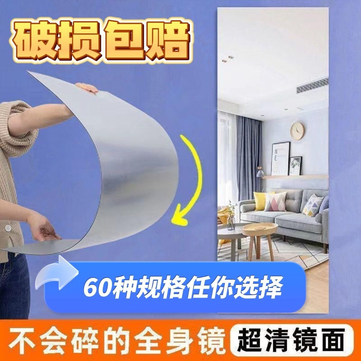镜子贴墙自粘自贴墙贴不变形墙面镜子新款自粘镜面贴墙自贴卫生间