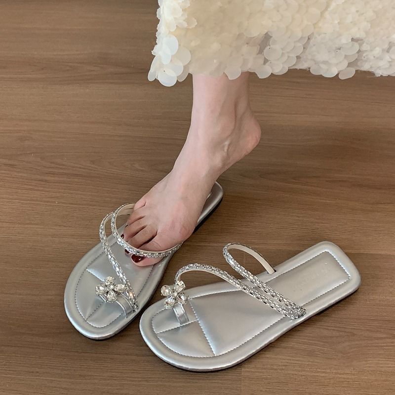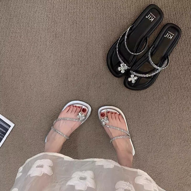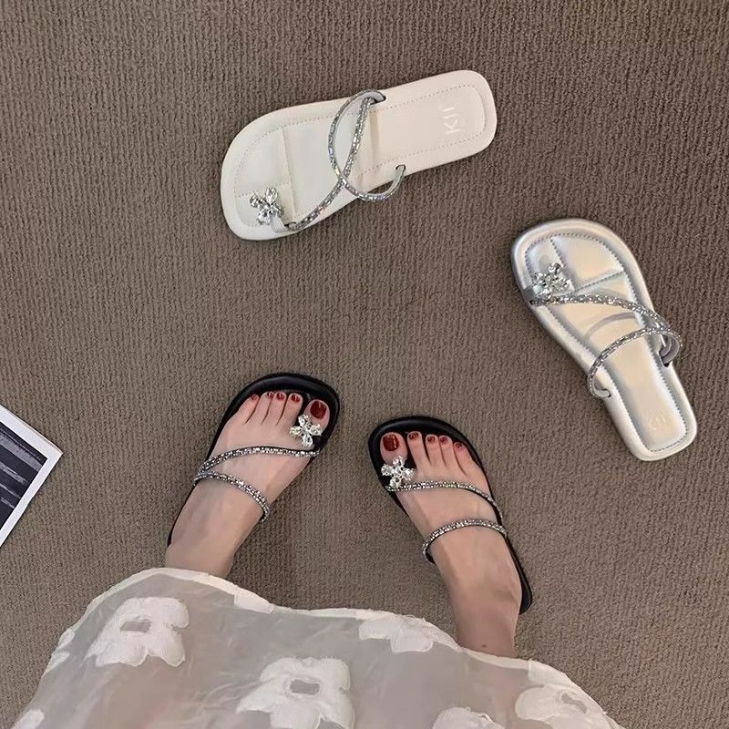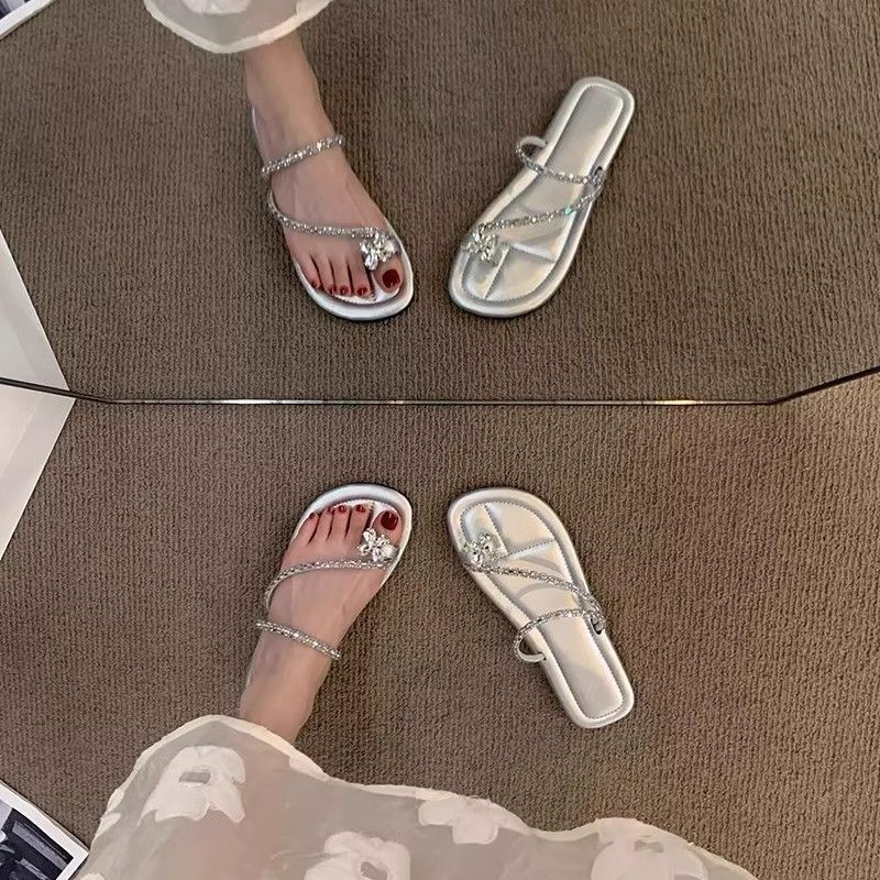 平底闪钻套趾拖鞋女夏季外穿新款时尚气质海边沙滩软底凉拖鞋