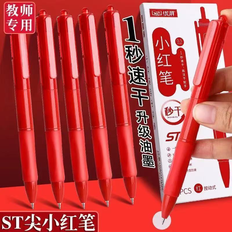 小红笔按压式红色中性笔按动高颜值红笔老师批改作业ins【7天内发货】