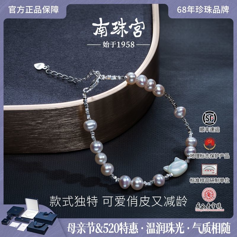 南珠宫S925银猫咪淡水珍珠手链明星同款个性独特母亲节礼物