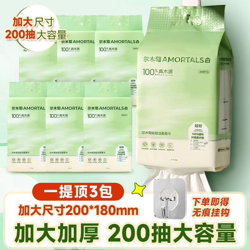 尔木萄洗脸巾200片悬挂底部抽取式洁面巾壁挂绵柔巾柔软亲肤加厚