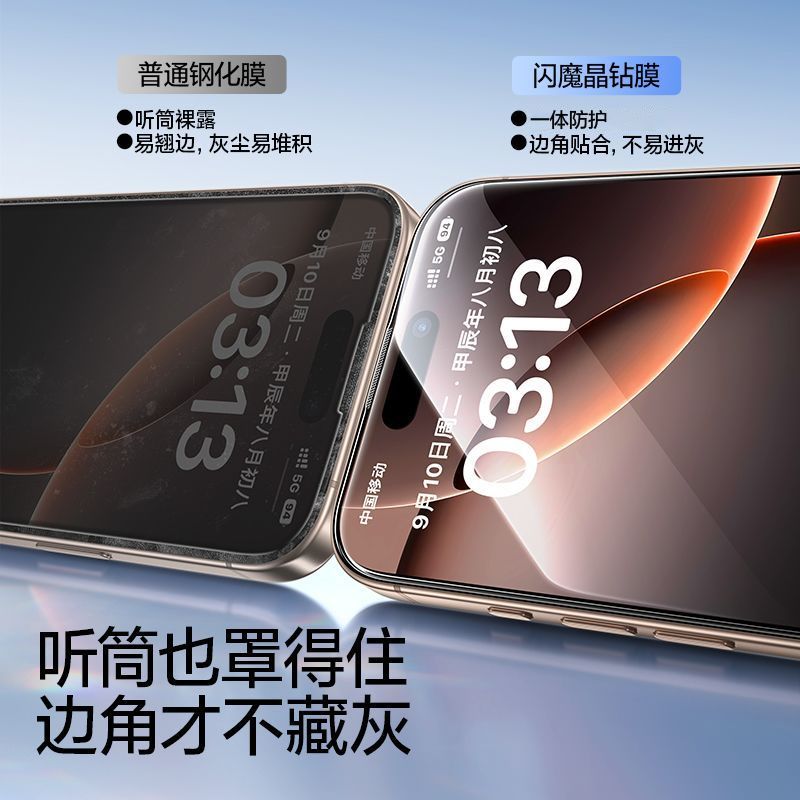 闪魔晶钻适用iPhone16Pro钢化膜苹果15/17ProMax无尘舱秒贴防爆膜