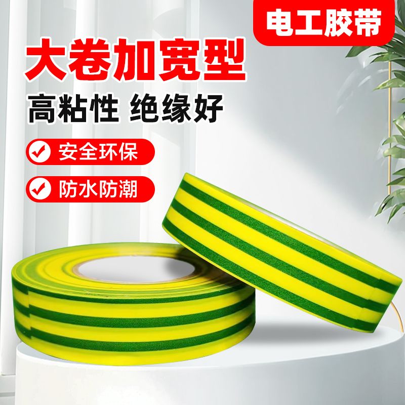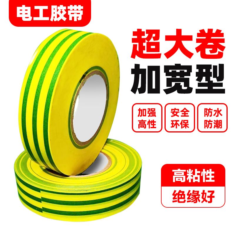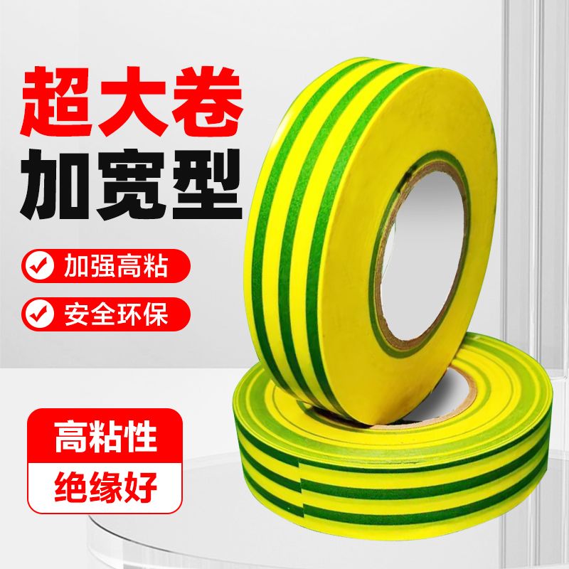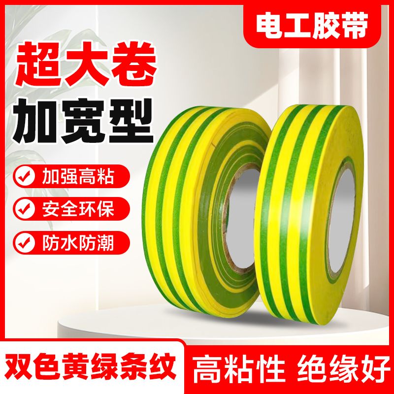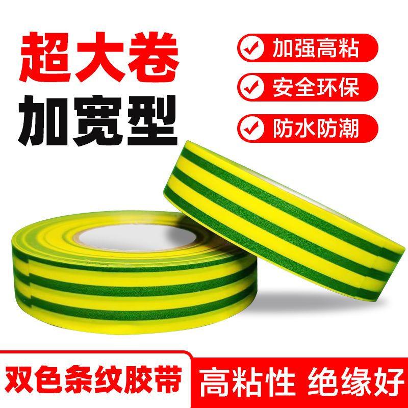 加宽双色胶布阻燃黄青地线PVC超粘标识胶带黄绿电工防水绝缘胶带