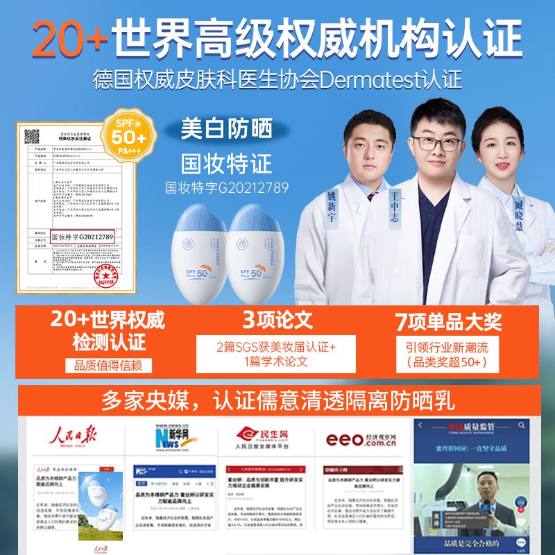 北大研发儒意防晒霜乳50倍防紫外线嫩白清爽防水防汗敏肌军训学生