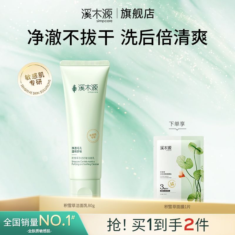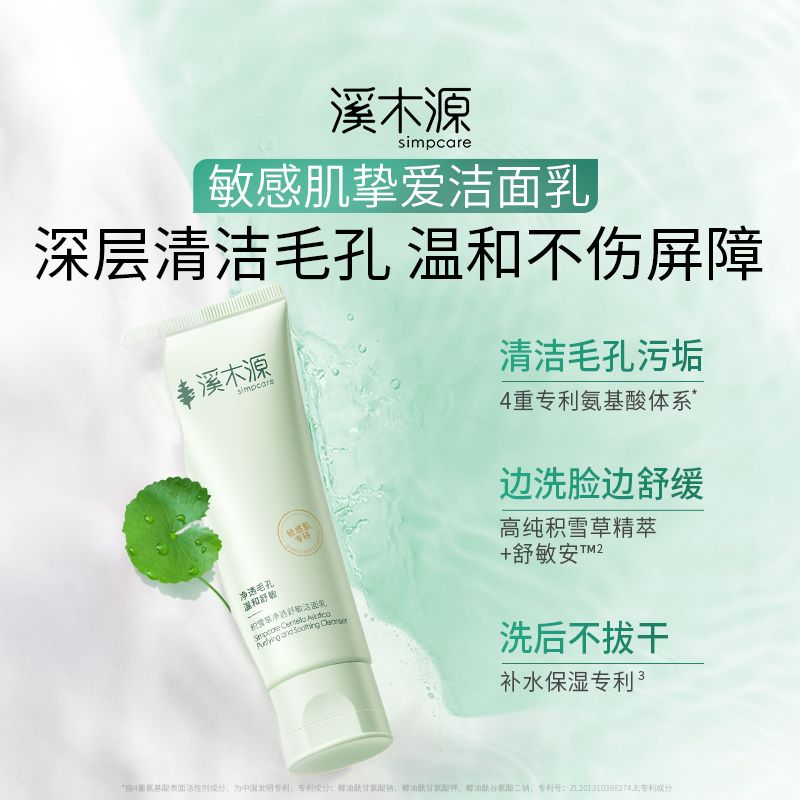 溪木源积雪草氨基酸洁面乳男女补水保湿深层清洁洗面奶学生党熬夜