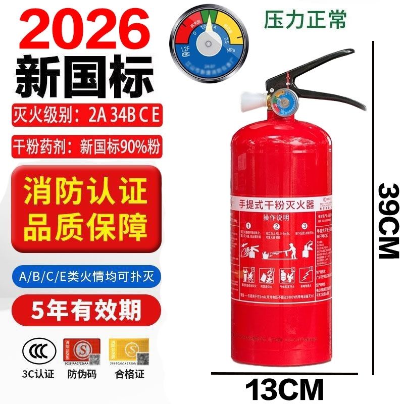 国标手提式4公斤干粉灭火器店用车用家用商用2/3/4/5/8KG消防器材