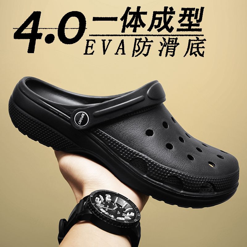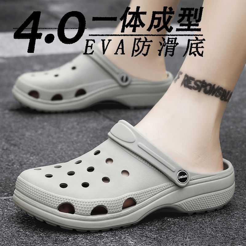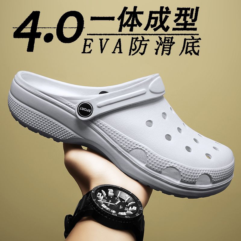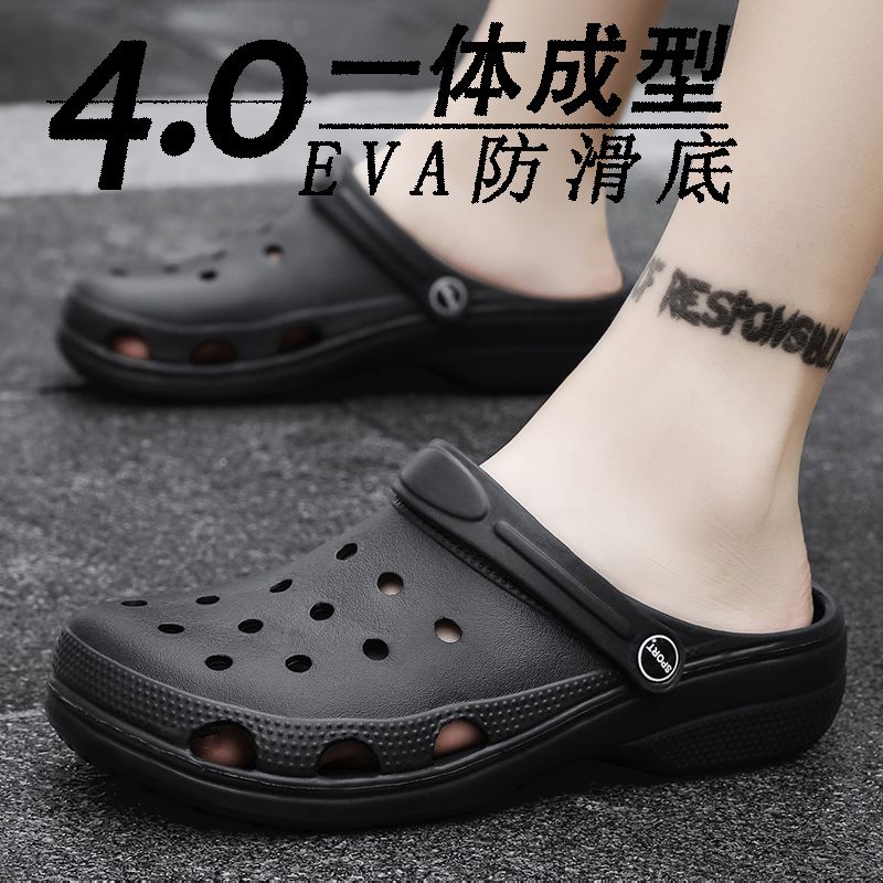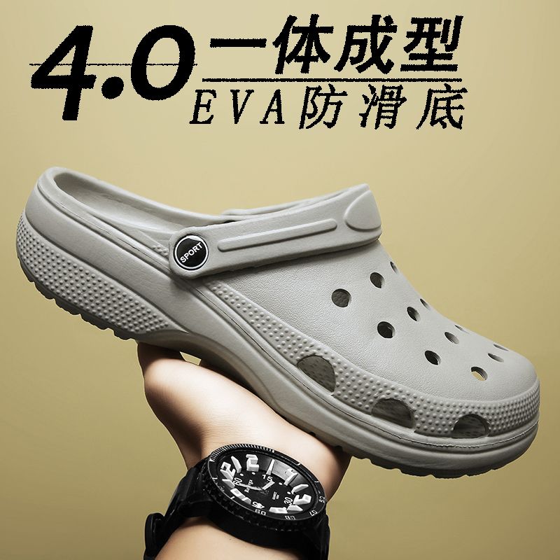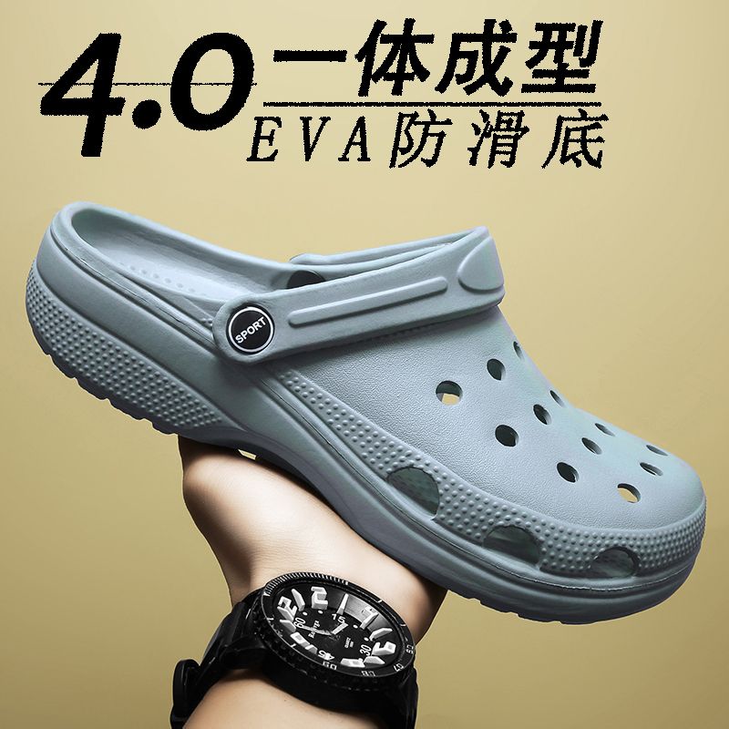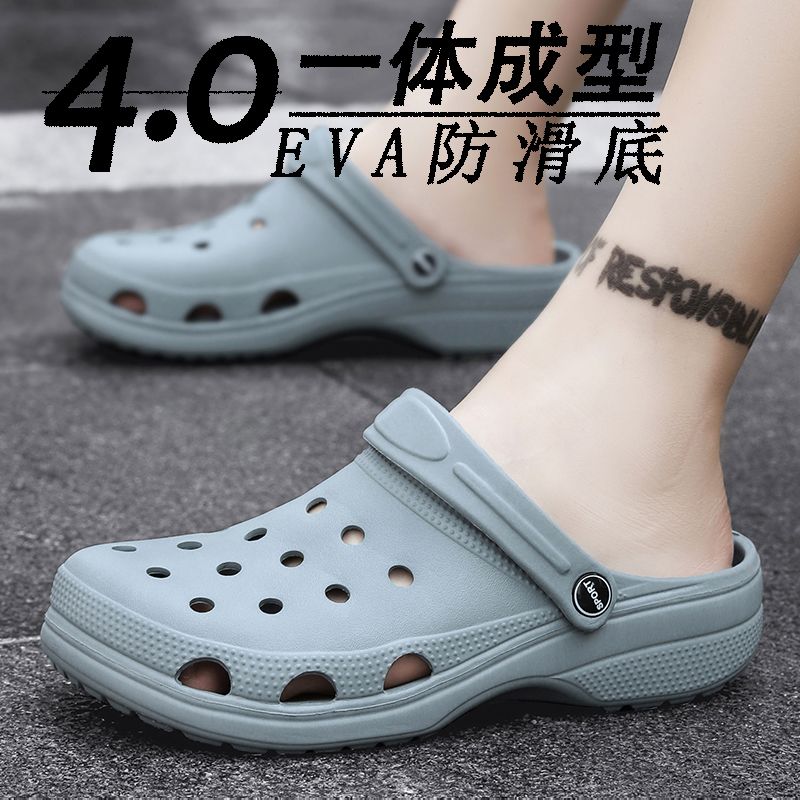 多巴胺洞洞鞋男款夏季防滑防臭耐磨情侣大码外穿包头凉拖沙滩鞋男